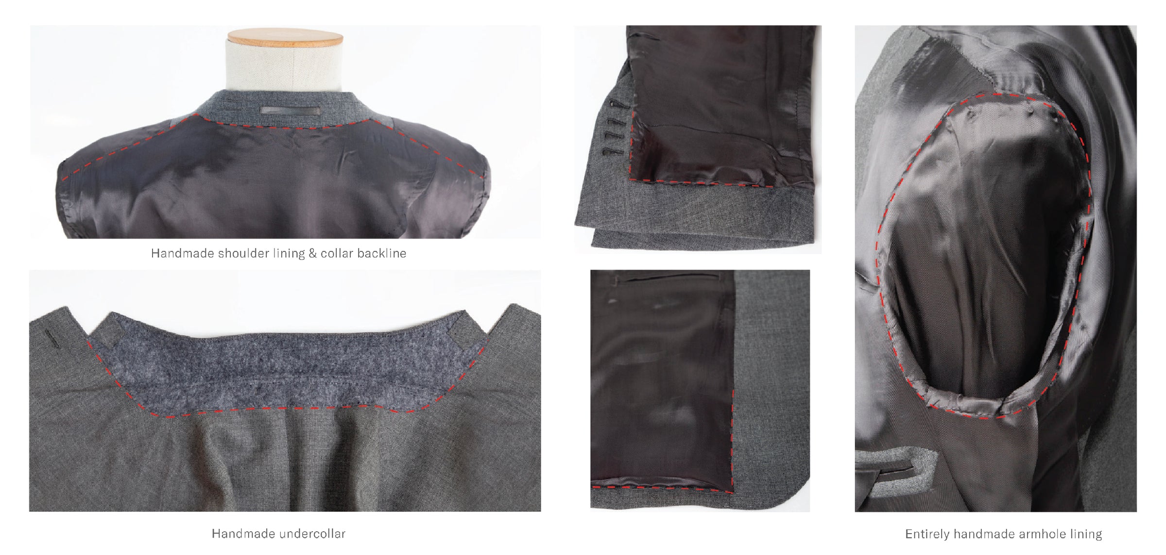 We work hand-in-hand with some of the world’s most prestigious fabric mills — including Loro Piana, Dormeuil, Vitale Barberis Canonico, Holland & Sherry, Tallia di Delfino — to ensure every suit begins with the finest raw materials. But fabric alone is not enough. What truly defines our work is what’s beneath the surface.